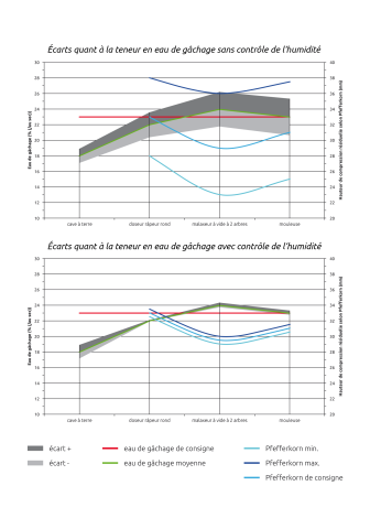 Grâce à une régulation de l'humidité (comme par exemple pour le doseur rond), il est possible de réduire l'écart entre la teneur en eau de gâchage et la valeur de consigne et d'exercer ainsi une influence décisive sur la qualité du produit.